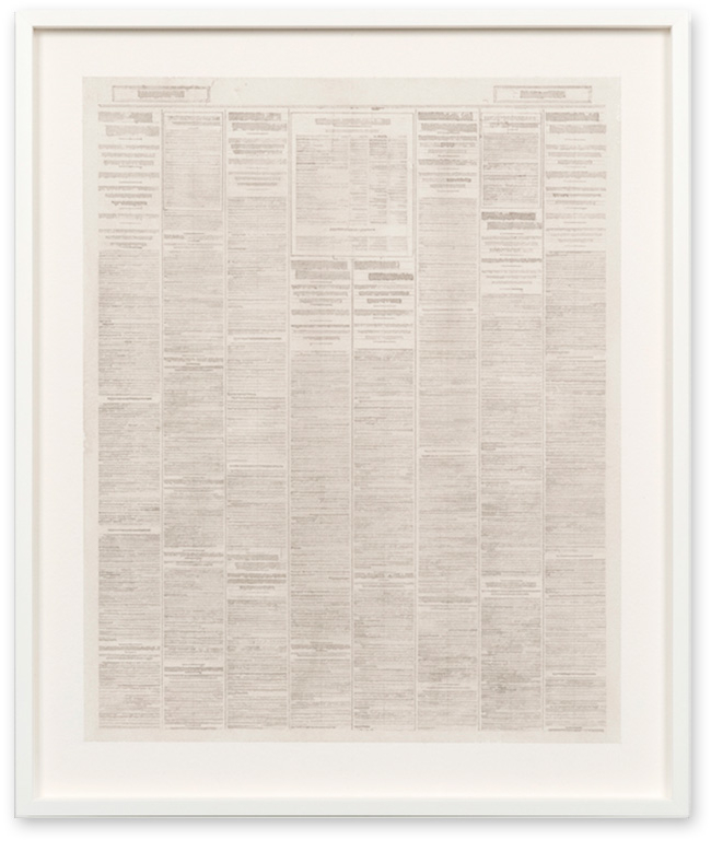 Newpapers Newspaper #32011Pencil & India Ink Wash on Paper, 27 x 22.5 inches framed Newspaper #52011Pencil & India Ink Wash on Paper, 27 x 22.5 inches framed Newspaper #122011Pencil & India Ink Wash on Paper, 27 x 22.5 inches framed